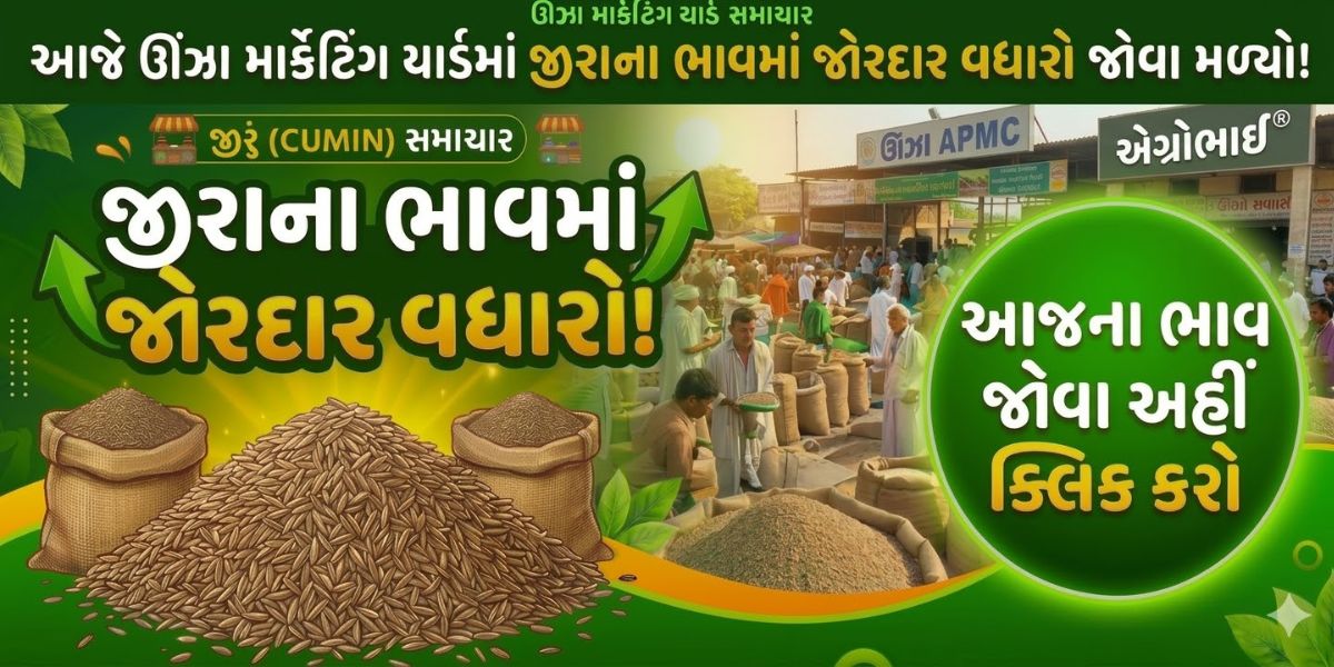એશિયાના સૌથી મોટા ગણાતા ઊંઝા માર્કેટિંગ યાર્ડમાંથી ખેડૂતો માટે ખૂબ જ સારા સમાચાર સામે આવી રહ્યા છે. છેલ્લા કેટલાક સમયથી જીરાના ભાવમાં જે સ્થિરતા હતી, તે હવે તેજીમાં બદલાઈ રહી છે.